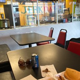 I was at their new location at 4355 desert inn! It's a very cool clean place with a very good location. The walls are colorful coated, there's a 50 inch television playing excellent Nigerian South African and African music videos,.. and the seating is comfortable and adequate.. but most importantly the food is amazing;) I was there for a African club meeting and it's the perfect place to do business but it's also a great place to just come and bring people for excellent Jamaican food. The owner is a great guy very connected in the city and he is an executive chef in conventions at the cosmopolitan hotel.. you can't lose by going here but it's right at the corner of desert inn,... And as of next week or so they'll have an full bar. I recommend it and I definitely plan to go back. I'm training for a fight so I can't go until after August 10th.
