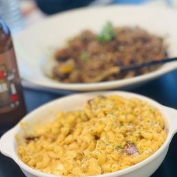 EVERYTHING! You must try the latest location on Desert Inn and Arville ( this is where you'll even run into the CEO as well ), and even take a photo or two in front of the famous Jerk Dat backdrop! Everyone is friendly and welcoming the moment you walk inside of the restaurant. If you are in the mood for something creamy and tasty perhaps you should start by ordering the Lobster Mac & Cheese and a side of Oxtail eggrolls ( don't forget to ask for the dipping sauce ) ...- They even have oxtail fried rice NO ONE and I do mean NO ONE in Las Vegas has oxtail egg rolls or oxtail fried rice so that in itself should tell you that this place is the GO-TO for authentic Jamaican cuisine